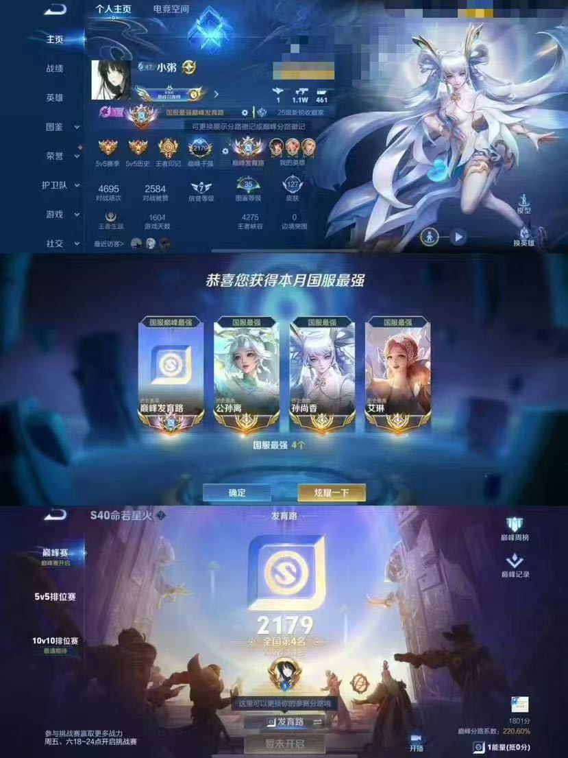 十一月在榜国服镜露娜澜猴子/国服李信木兰/马可熬隐128打野