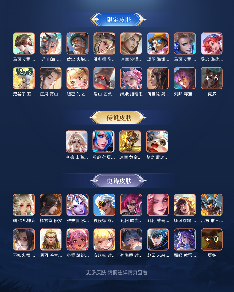 125英雄.191皮肤马超无双飞将达摩黄金狮子座李信兔年限定 貂蝉仲夏夜之梦星传说6传说.59史诗