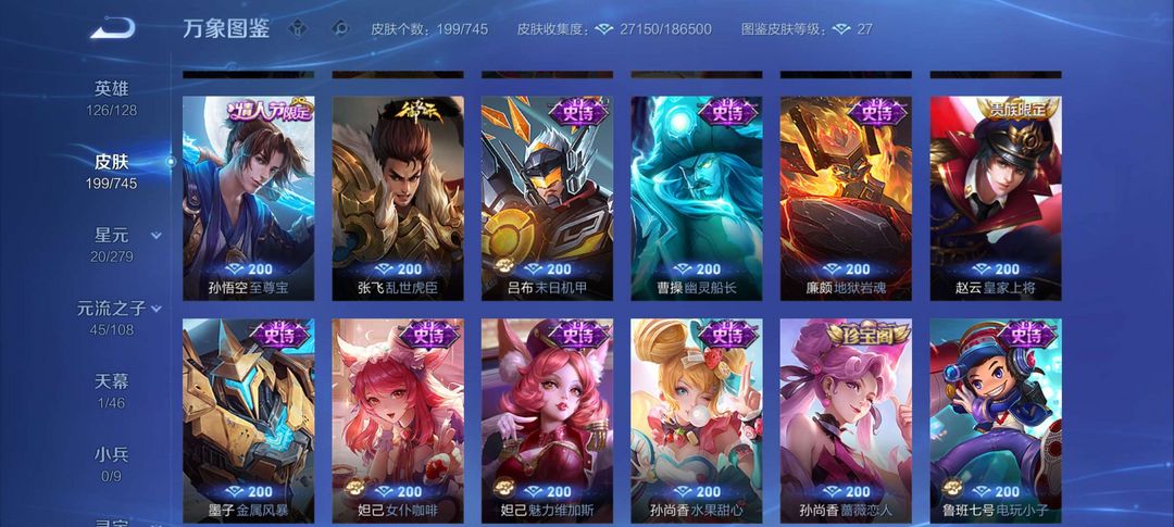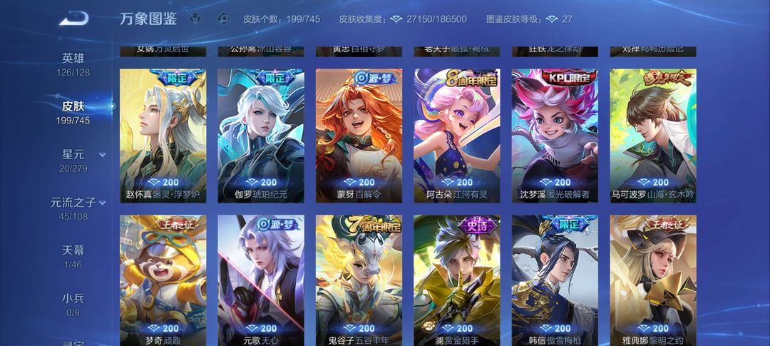 至尊宝,傲雪梅枪,沈梦溪kpl,神威,孙行者,龙胆,金蝉,幽冥之眼,澜的年限皮肤,