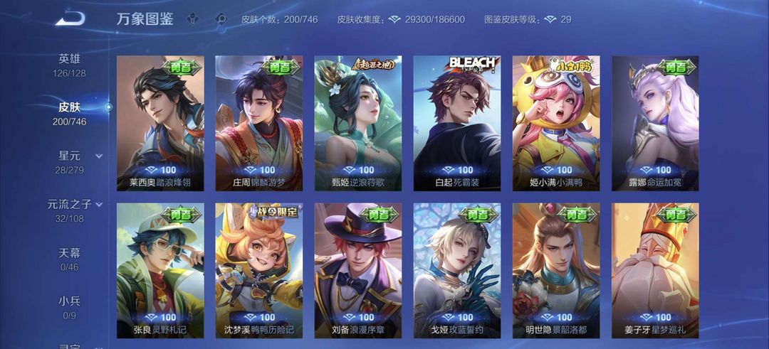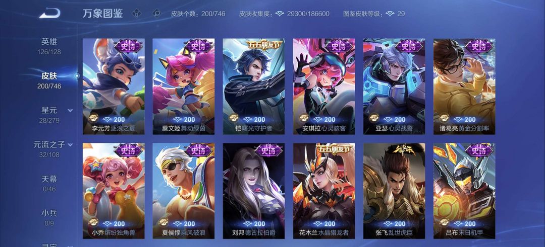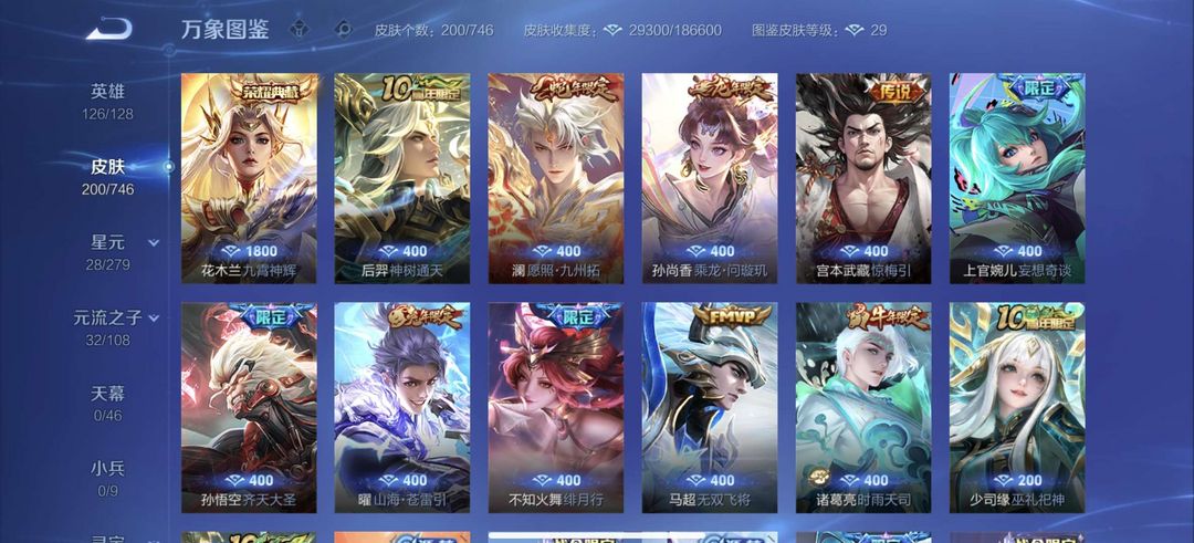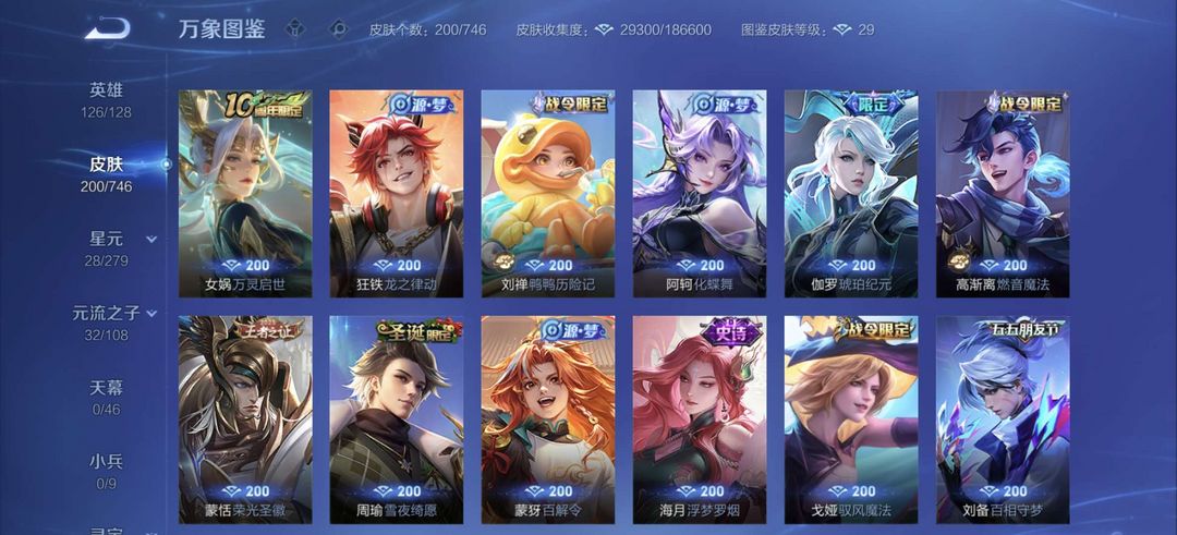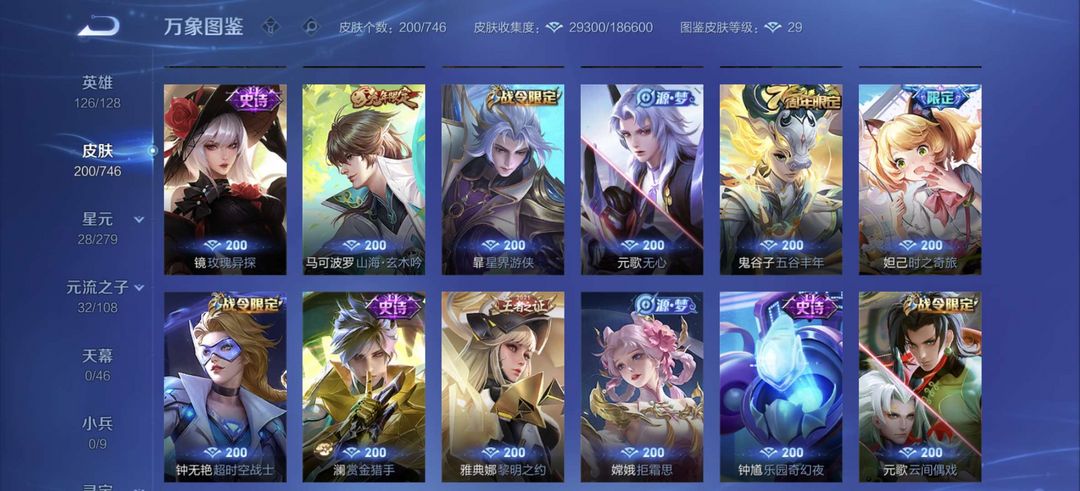 九霄神辉 绯月行 时雨天司 无双飞将 九州拓 问璇玑 苍雷引 朱雀志 玄木吟 铭文150皮肤200