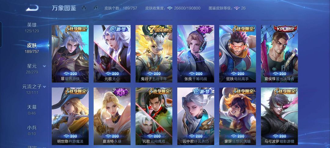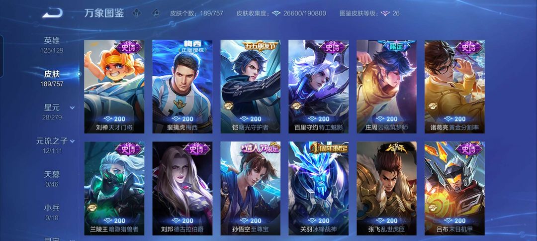 V8百皮绝版梅西,荣耀典藏九霄神辉武陵仙君,凤求凰,至尊宝,绝版钟无艳赏金猎人