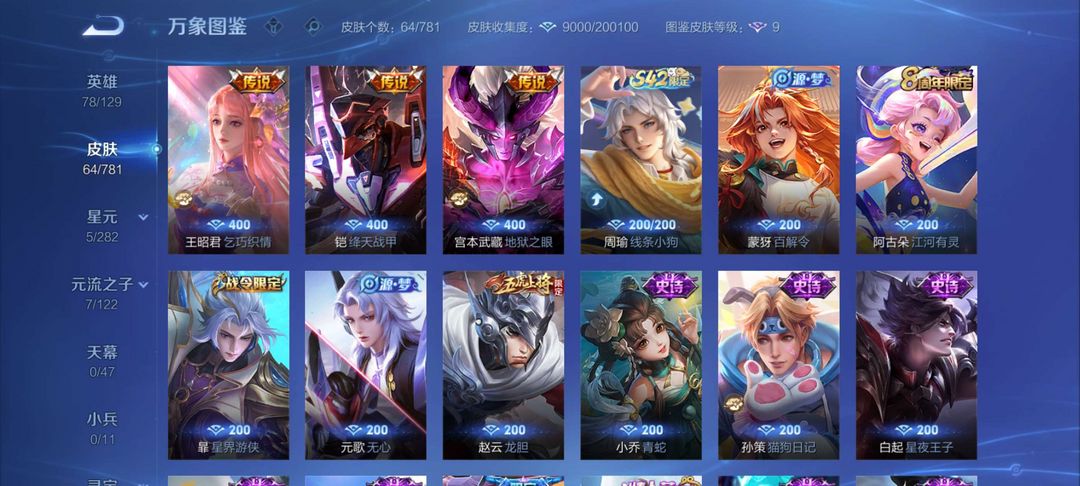 装备描述:现省标猴子 至尊宝 地狱之眼 街头霸王 等限定皮