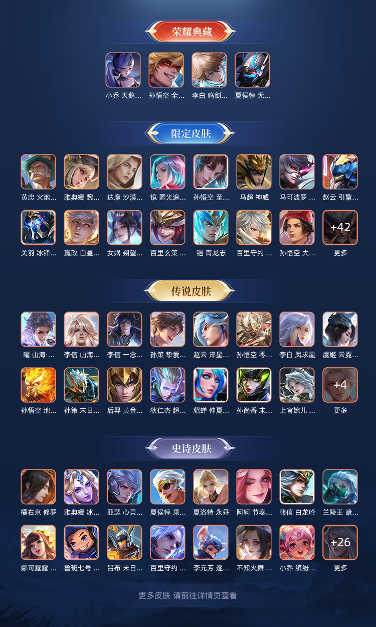 王者段位贵9号,4荣耀典藏.天鹅.飓风李白,夏侯惇,猴子的荣耀水晶皮肤,各种传说限定