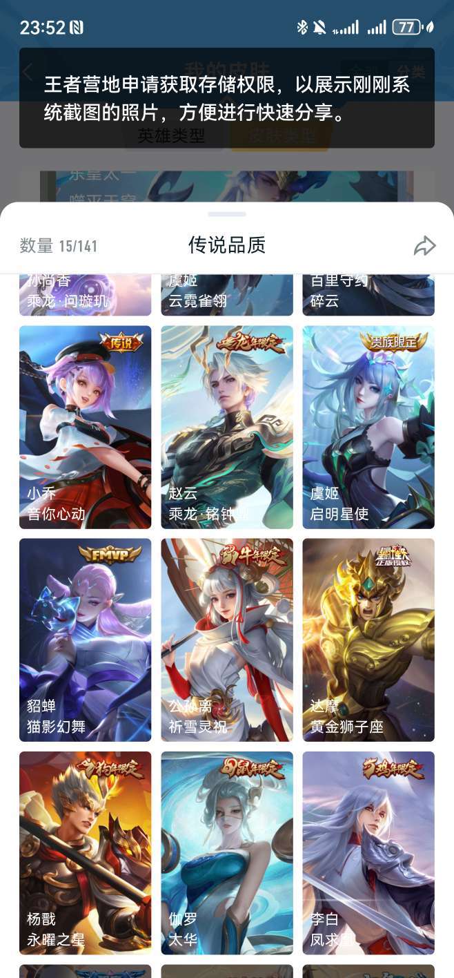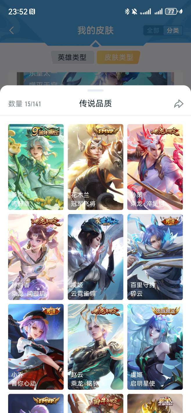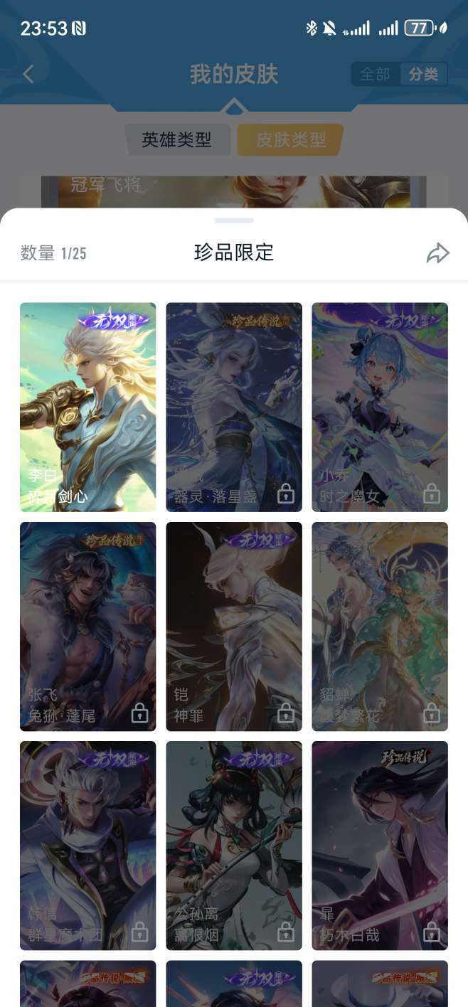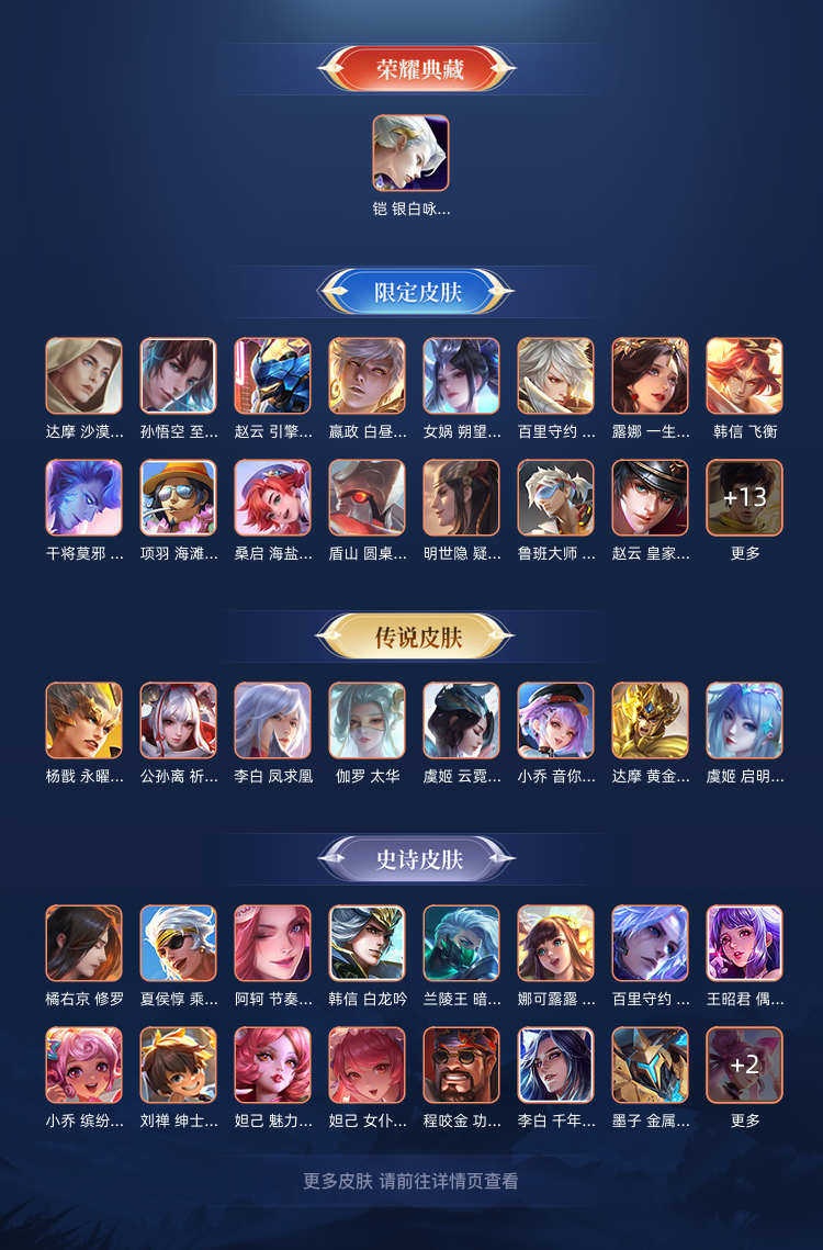 v8 星耀 李白无双皮,凯典藏,还有多个生肖年限、稀有限定皮肤