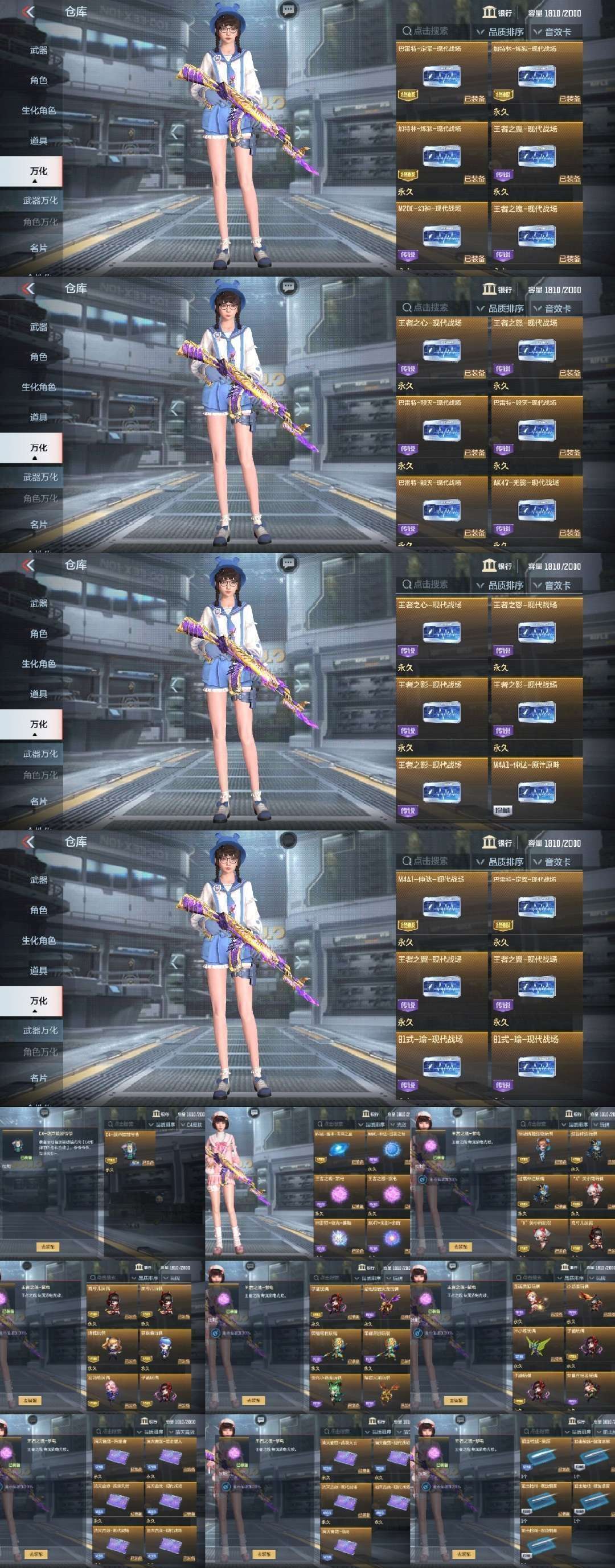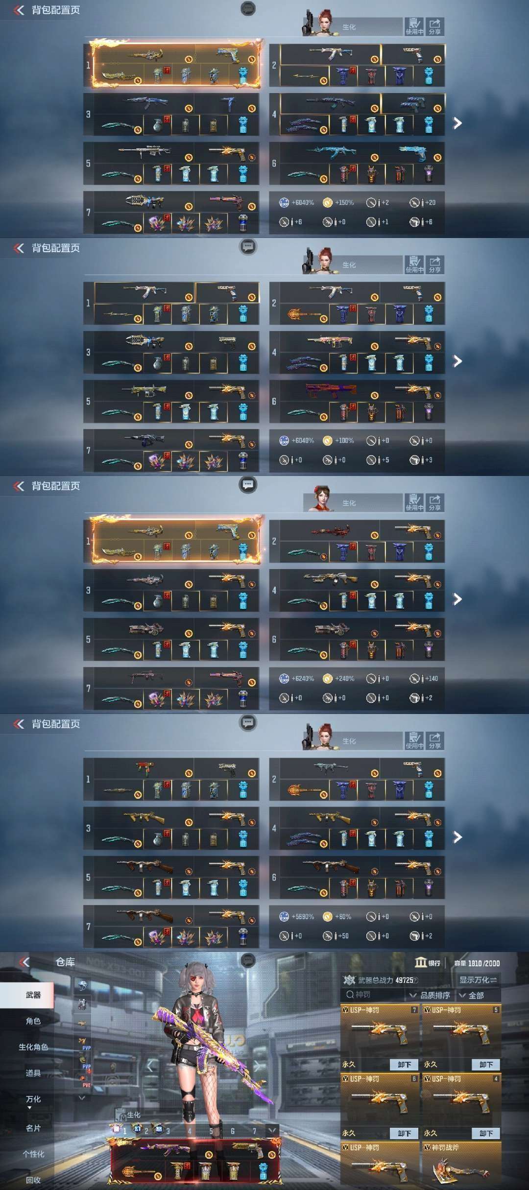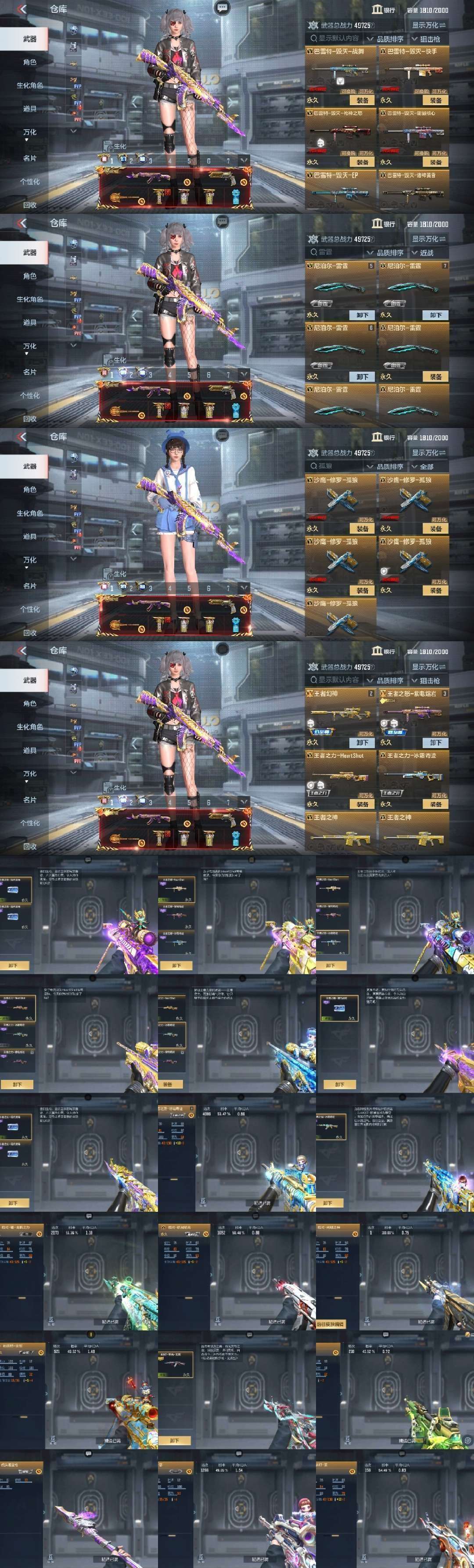 装备描述:♥贵族十,最新98K-星神,7COP,6狙击枪线,9消灭音效,C4葫芦娃皮肤 ♥新氪王者之技 ♥王翼紫电熔岩+音效,王怒紫电熔岩+音效,王力紫电熔岩+音效 ♥幻神战舞套装,仲达过载套装,妙才过载套装,瑜龙腾套装,81机械纪元套装,葫芦娃黑耀宝葫套装,堕天神套装,武圣套装,慈套,KSG火力竞放套装,毁灭枪神之怒套装,火麒麟玉门春风套装,黑武士诸神黄昏套装,黑骑士能量核心套装,死神能量核心套装,波塞冬套装,宙斯套装,金色蔷薇套装,天使套装等 ♥生化:王狱+6盘龙+6神罚(500多发),宙斯套,变色龙,嗜血金鲨,死亡之眼+6烈龙,波塞冬套装,巴雷特安琪拉,风神翼龙套装,死神套装,雷霆套装等 ♥毁灭全皮肤:枪神之怒,EP,战舞,诸神黄昏,快手,不屈老兵,能量核心,寒霜,暗月,街机
