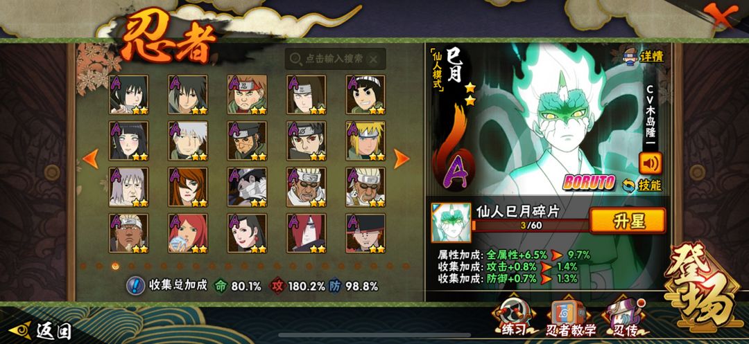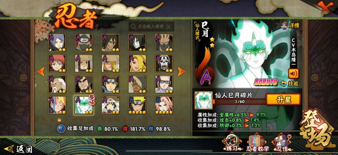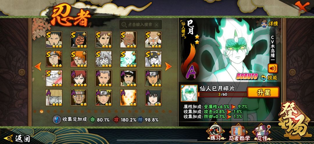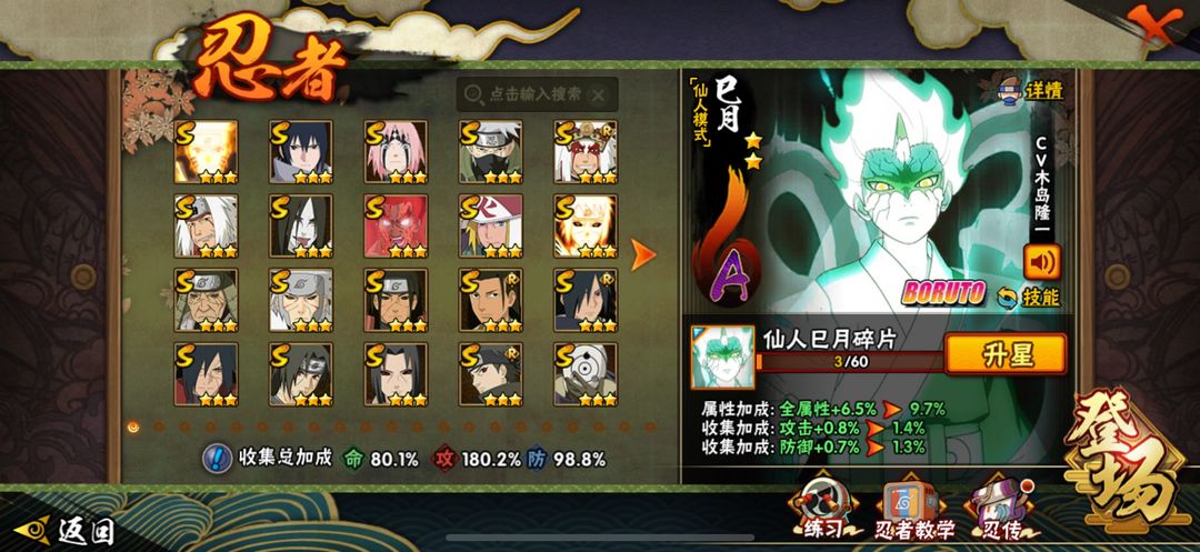 31S,48A,仙人巳月+须佐止水+漂泊佩恩+死二+紫狗+创立柱间解班+忍战大野+白面具