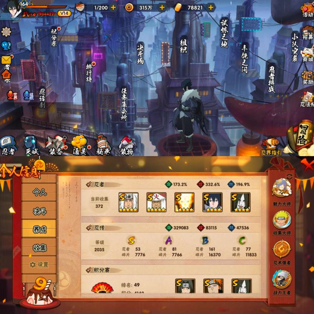 53S✨82A✨372忍✨侠影佐助✨九喇嘛水门✨烈斗✨漂泊带土✨晓飞段✨2900w战力顶配号