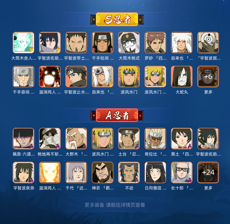 装备描述:170忍者19s30a忍战带土,白面具,传说自来也,知晓一切的人,须佐卡,漂泊佩恩,罗砂,须佐止水,舍人