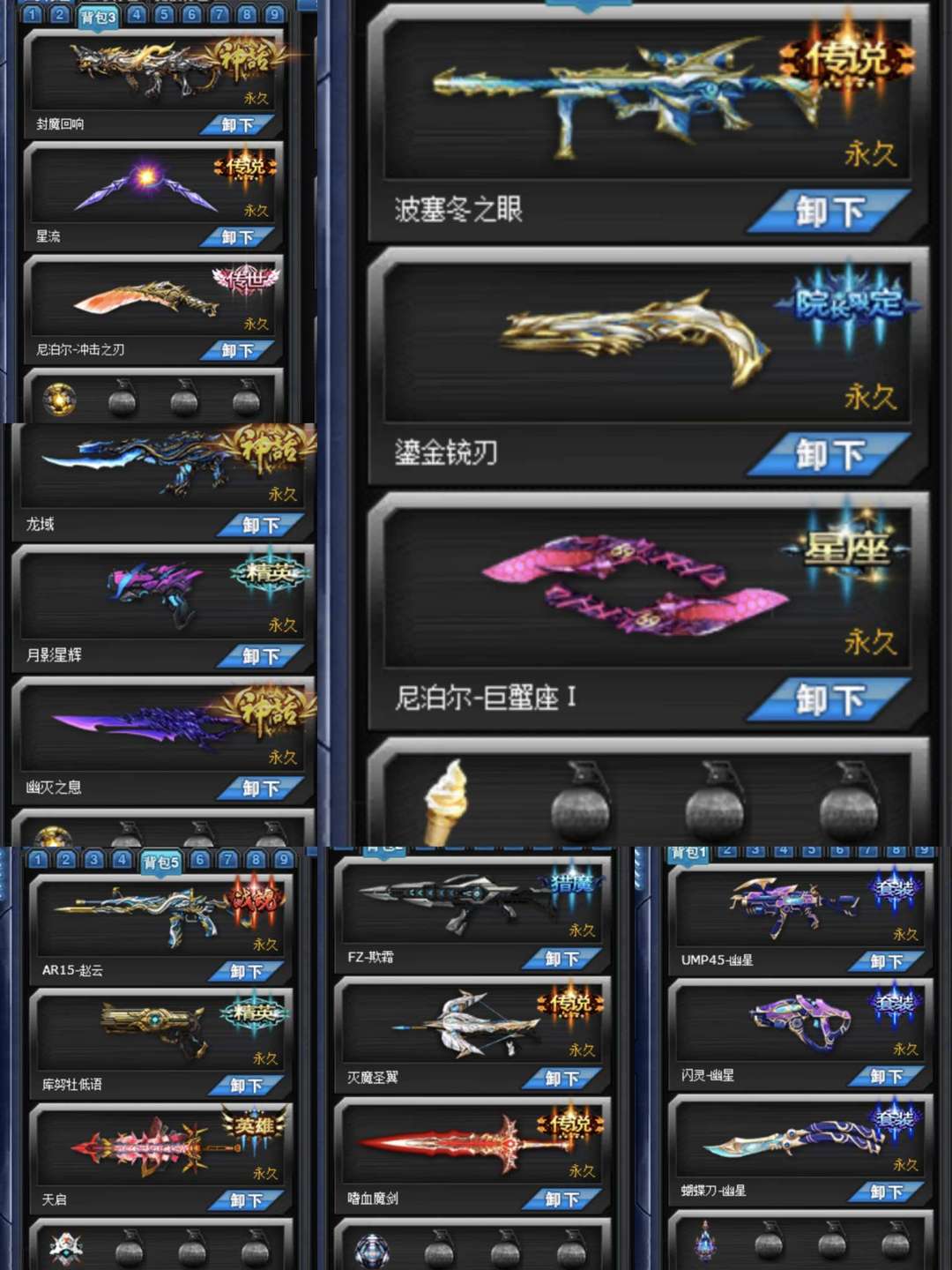 装备描述:极品生化爆破怀旧号,四阶雷龙,冲击之刃封魔回响,星流,幽星套,海滩套,龙域,幽灭,大雪,满配天启,灭魔1,女亚瑟怀旧魔剑生化,双火雷
