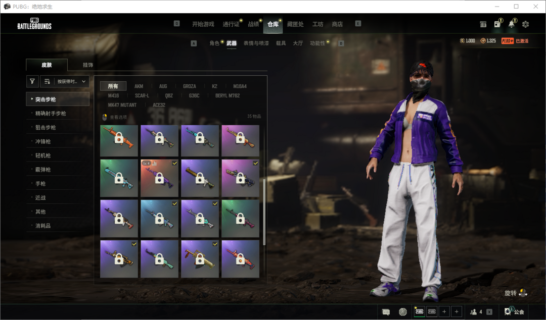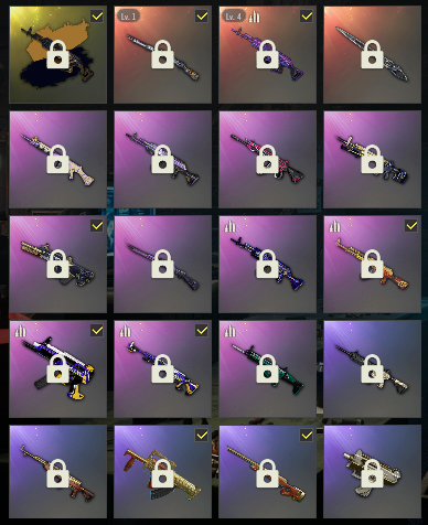 装备描述:④级黑金异色美杜莎M76✨①级猛虎猎手✨沙悟净AUG✨孙悟空AKM✨战术科技MP5✨湮灭M762✨PUBG信条马甲✨怪笑针织帽✨战术科技长裤✨星魂裤