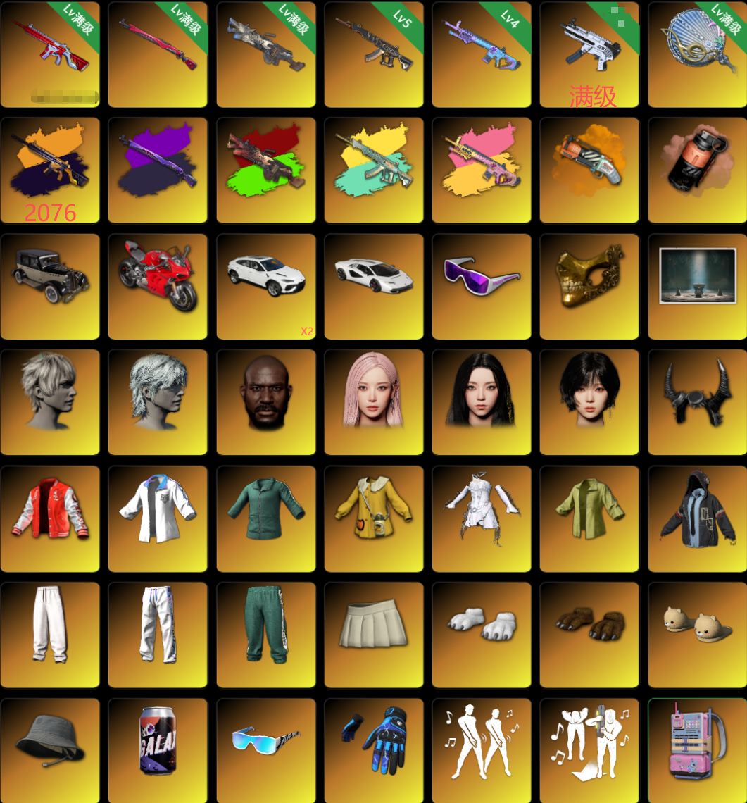 杜卡迪兰博超跑✨⑩异色无信号m4⑩异色98k✨⑩异色大菠萝⑩mp5k✨4级异色ACE黑鬼女团粉电包