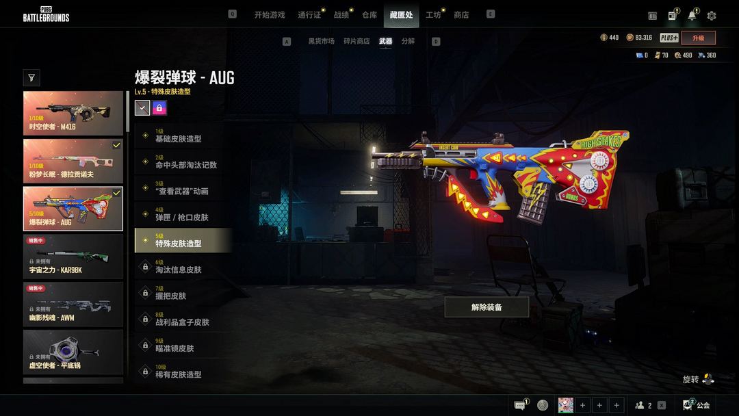 5级爆裂弹球AUG|时空使者M4粉梦长眠德拉贡|多色车皮|PNC套装|发光手臂|黄金首尔裤雪山绿东