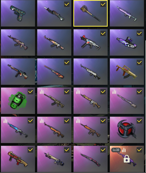 装备描述:满级金色美杜莎M762/最后的小午夜M24/弥诺陶洛斯AUG/无重力MP5K/魔咒之力MK12/完美角度KAR98K/皇冠宝石MK12/弥诺陶洛斯DBS/切割狂潮平底锅/紫色烟枪/翡翠色烟雾弹/悲喜套装/柏林鞋/渔夫帽/八面威风太阳镜