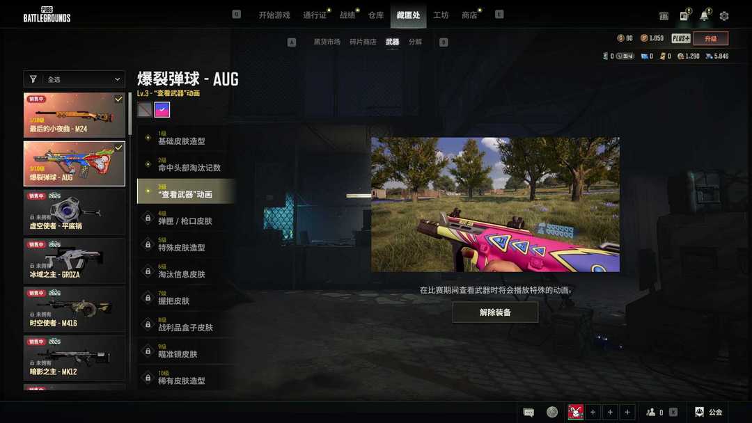 究极异色AUG爆裂弹球最后的夜曲M24滑雪镜金色首尔裤白色运动裤暗夜追踪者手套多发型