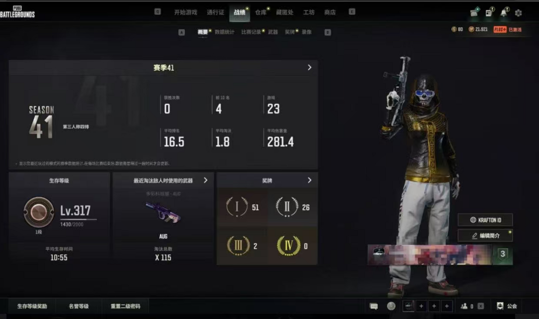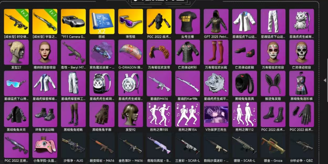 装备描述:保时捷911✅时空使者m416③✅宇宙之力98K①✅M762毒性、玩偶等,可进行排位组队✅,有战队金战神衣、星魂套装全部套装,各种套装衣服,喜欢本账号请点 ☆收藏☆ 方便下次租用,谢谢光临惠顾!