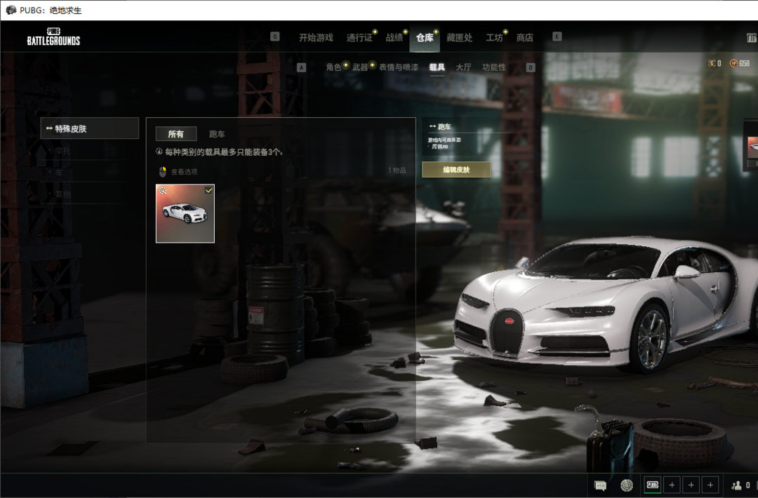 装备描述:布加迪威龙跑车✨①级宇宙之力✨镀金SKS✨彩塘蛋糕AUG✨小青龙套✨星魂套✨怪笑针织帽