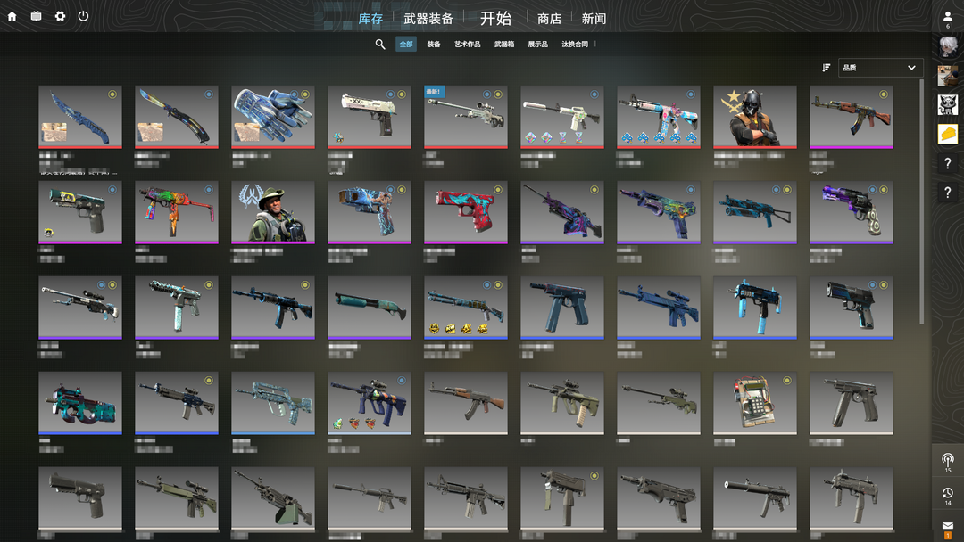 完美S⚡双刀⚡大蓝头淬火蝴蝶⭐澄澈折叠⭐双栖手套⭐金顶蓝屁股淬火AK⭐awp印花集全套看描述