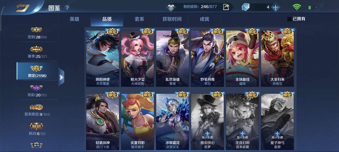 安卓应用宝一区127英雄249皮肤李白全皮肤积分英雄皮肤超多