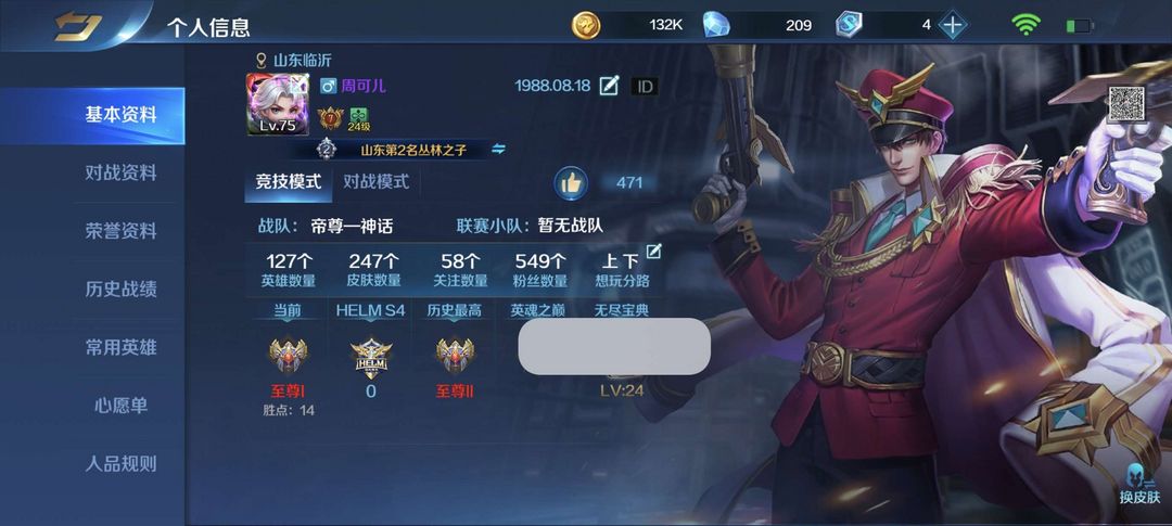 装备描述:皮肤超多,排位可以打,禁止挂机、毁号,违规者扣除全部押金,禁止利用账号进行开挂、使用辅助违规软件诈骗等违规操作。