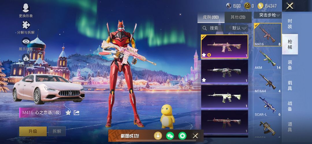 装备描述:7粉,1载具,5特效枪,468套装,11王牌印记 M416-心之恋语/SCAR-L-青春物语/玛莎拉蒂Ghibli粉