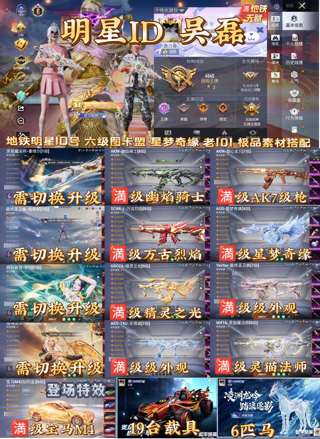 明星ID 吴磊 地铁号/6级图卡盟/星梦奇缘/无限阁/宝马M4/老101/保时捷911/灵猫