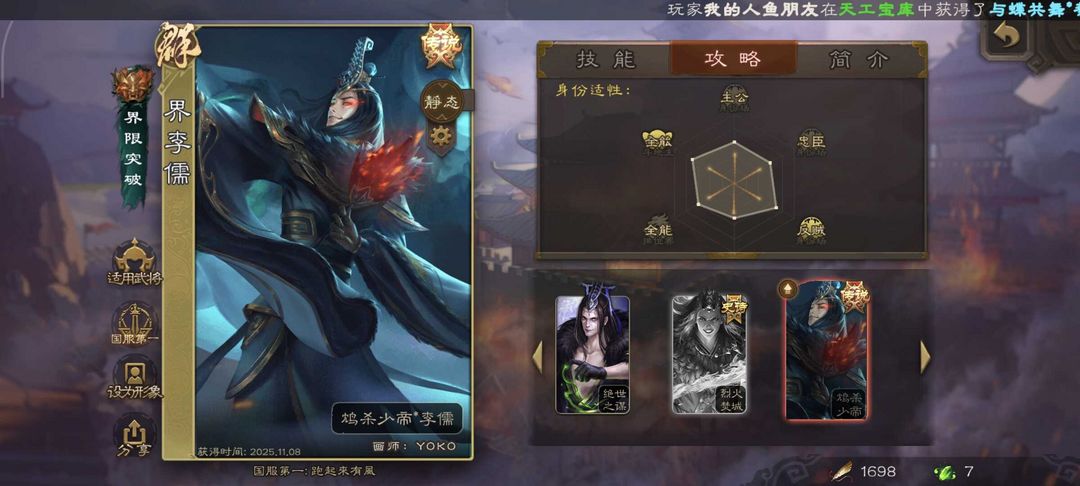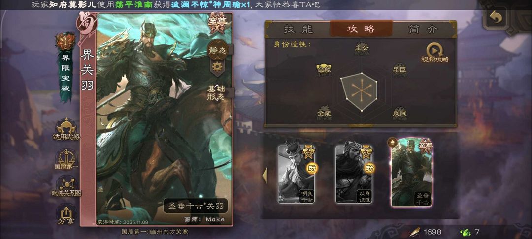 有卡/炸鱼先锋/圣垂千古至尊界关羽/裴秀/势太史慈/鸠杀少帝界李儒
