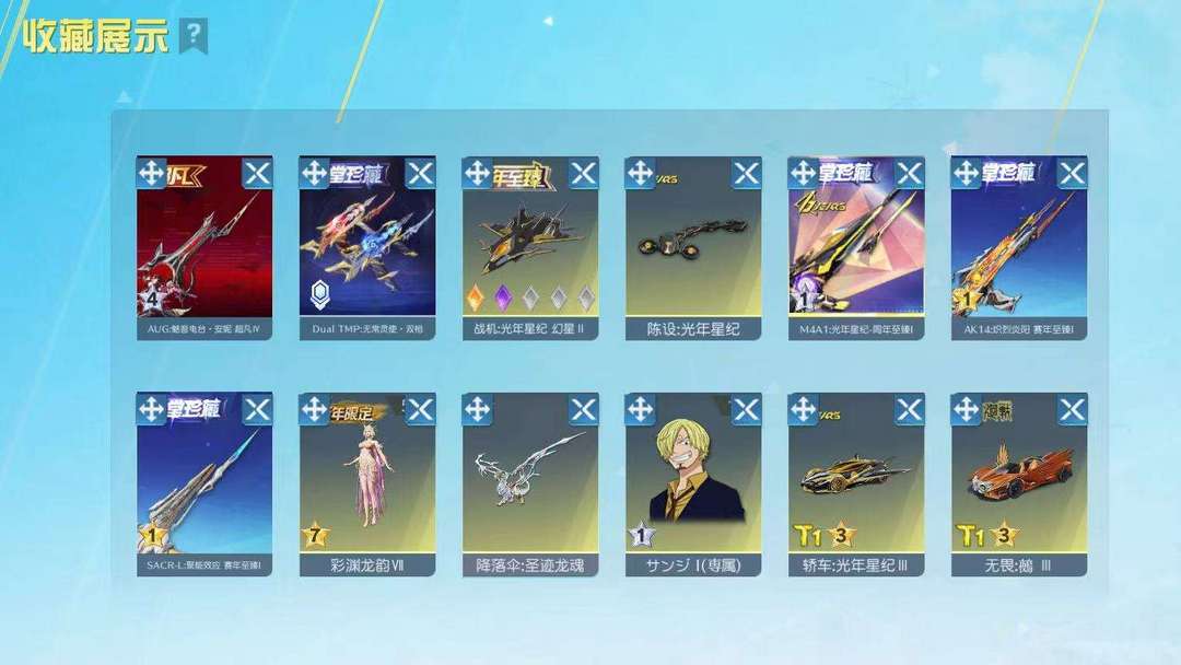 战斗机,周年至臻m4,殿堂双持,音效枪和衣服很多。
