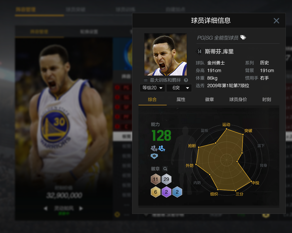【6突小时刻库里】⭐6突陈列室库里+小时刻⭐紫三分徽章⭐2K最强三分手
