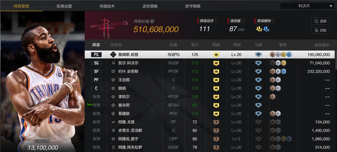 【10鹰王】【10时刻哈登】【10老鹰科沃尔】【10姚明】【10大致】【10阿联】【10李凯尔】