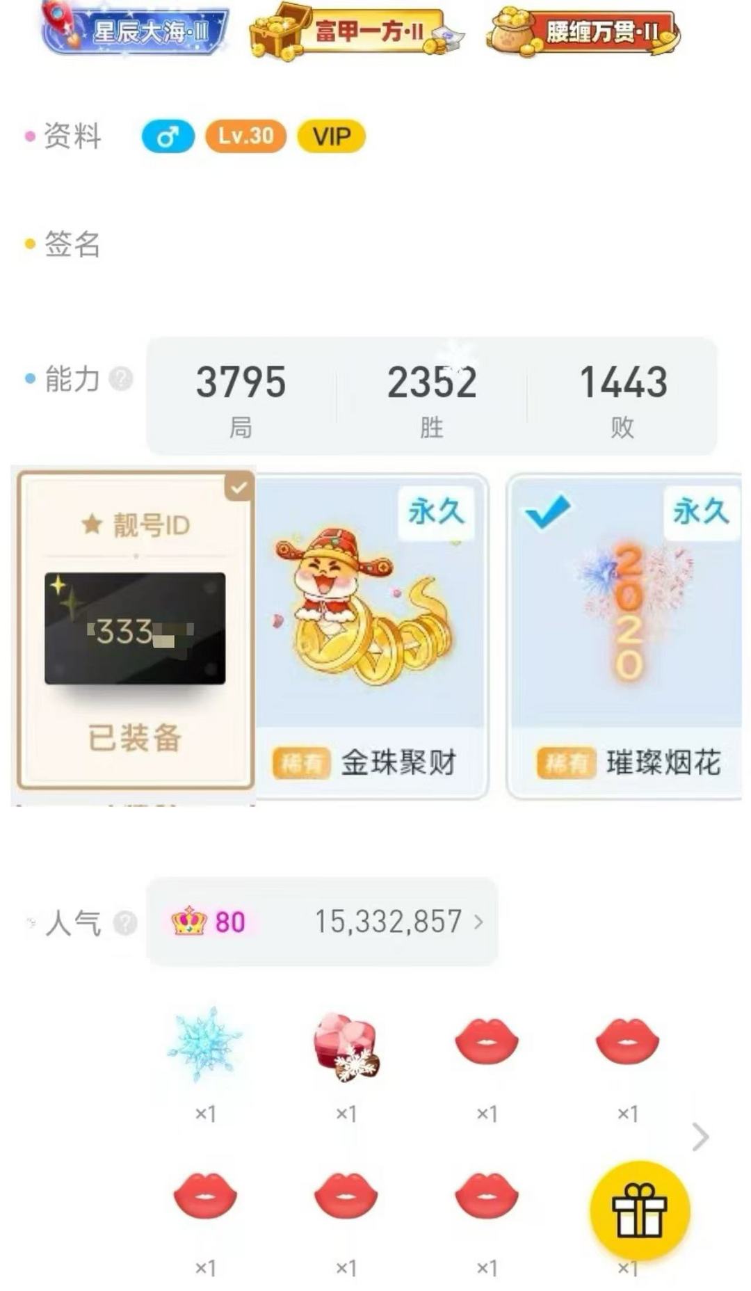 秋秋手游 80级满级紫冠 1533万人气至尊靓号 有麦克风 飘飘